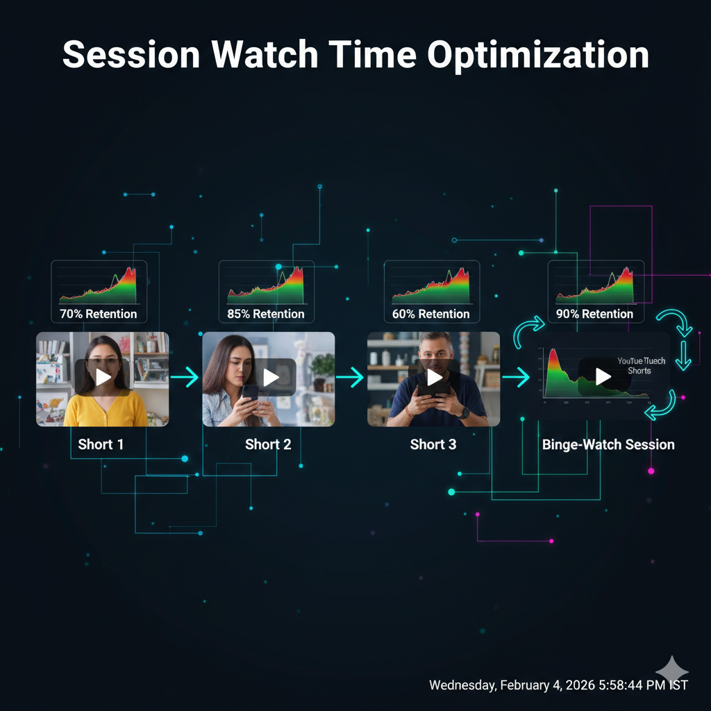 While individual Shorts watch time matters, YouTube now prioritizes how your content contributes to overall platform engagement. In 2026, Shorts that keep viewers watching more content (yours or others’) receive 3.2x more visibility.
