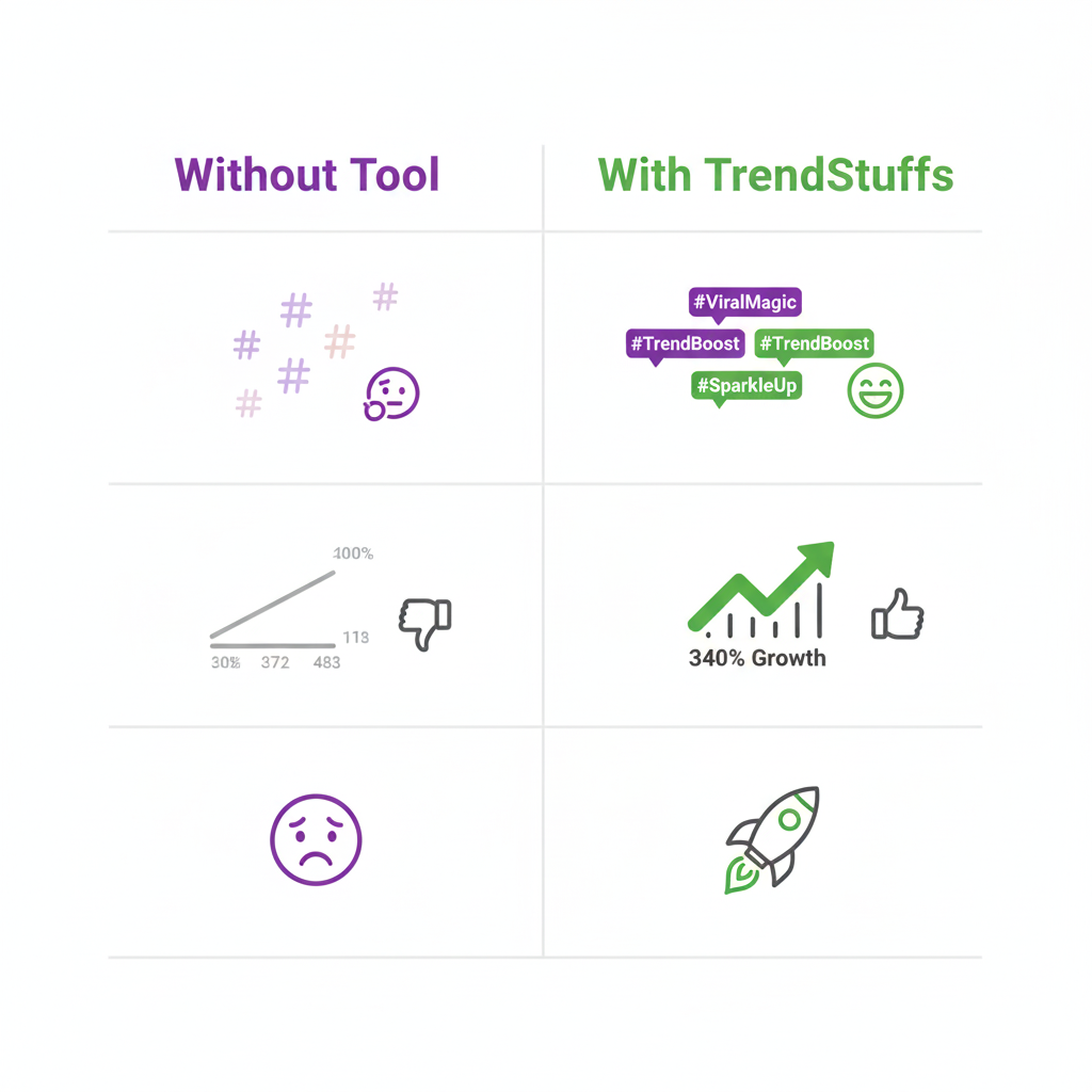 Research indicates that posts with relevant hashtags receive 12.6% more engagement than those without. However, the challenge lies in selecting the right mix of broad, niche, and trending hashtags—a balance that TrendStuffs Video Booster helps you achieve effortlessly.