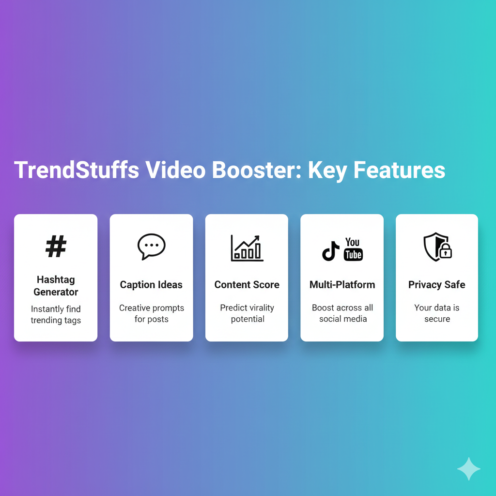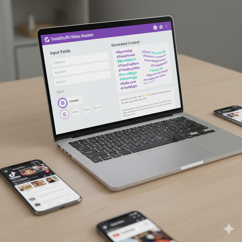 TrendStuffs Video Booster is an innovative, web-based tool developed by TrendStuffs.com to help content creators overcome the common hurdles of social media content creation. Unlike paid tools or complex software, this platform offers instant generation of trending hashtags, creative captions, and content optimization suggestions—all without requiring registration, payment, or compromising your privacy.